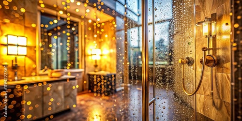 Luxurious Bathroom Shower, Water Droplets, Bokeh, Spa, Relaxation