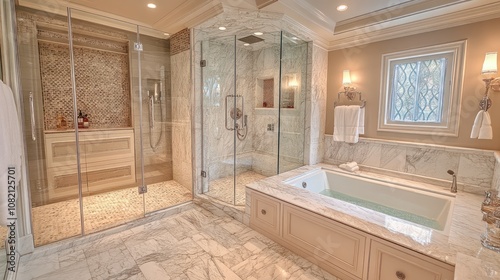 Luxurious Bathroom with Marble Finishes, a Freestanding Tub, and a Walk-in Shower
