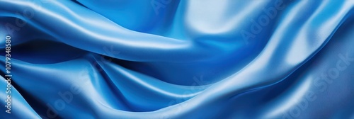 Luxurious blue satin fabric texture for fashion and design projects. World Theatre day. Horizontal banner. Copy space. Blue fabric texture background