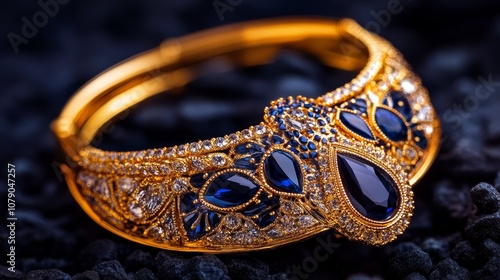 Luxurious Gold Bracelet with Sapphires and Diamonds Closeup