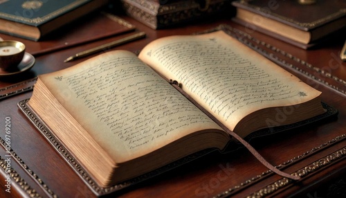 Luxurious Leather Journal with Handwritten Notes on Wooden Desk