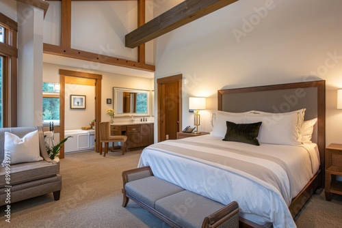 luxurious lodging showcases a suite with elegant furnishings and spa services, highlighting the opulent and relaxing amenities available for an indulgent stay.