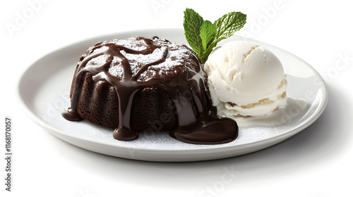 Luxurious Molten Chocolate Lava Cake with Ice Cream and Mint