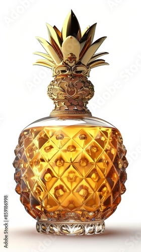 Luxurious pineapple-shaped glass bottle with intricate golden details, perfect for storing perfumes or liquors. Elegance meets tropical charm.