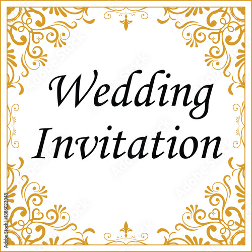 Luxurious wedding invitation template with golden floral ornate borders and elegant typography isolated on white