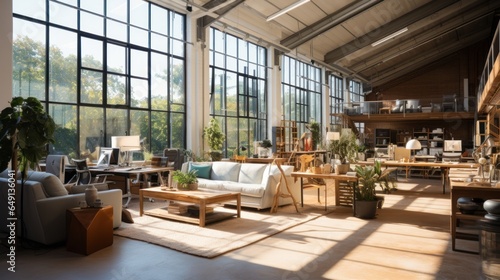 Luxurious workspace office decorated with industrial loft style, modern interior design.