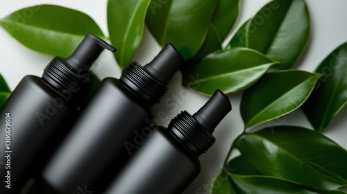 Luxury Black Bottles with Green Leaves: Eco-Friendly Skincare Products
