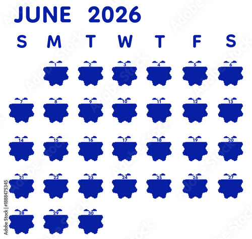 Luxury Botanical Navy Blue June 2026 Calendar Design, Transparent Background, Elegant Floral Frame with Minimal Daily Planning Space