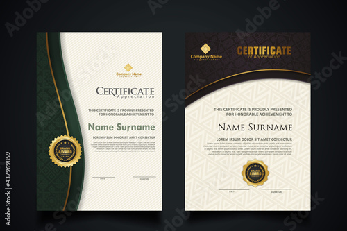 Luxury certificate template with elegant corner frame and realistic texture pattern, diploma Vector illustration