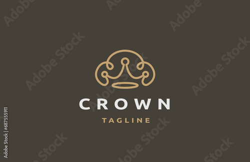 Luxury crown line logo design template