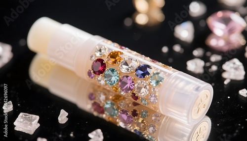 Luxury lip balm with gemstones and crystals for beauty and skincare product photography