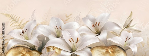 Luxury Orange Poppy Cascade Background with Golden Suns on Ivory