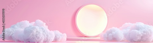 Luxury product display podium on pink background with 3D sky platform. Dreamy stage with romantic pastel sunset backdrop.