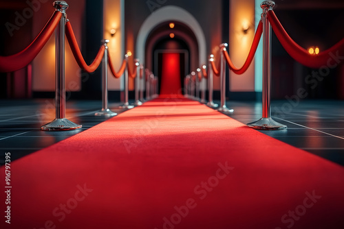 Luxury red carpet with selective focus. AI generated, human enhanced