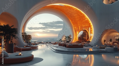 Luxury Sunset Oasis: Futuristic Architectural marvel with breathtaking views