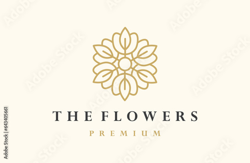Luxury vector logotype. Linear universal leaf flower logo