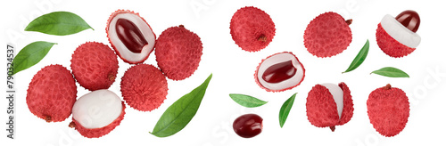 lychee fruit isolated on white background with full depth of field. Top view. Flat lay
