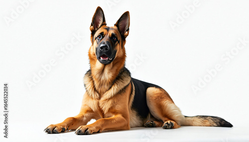 Lying German Shepherd Dog on White Background