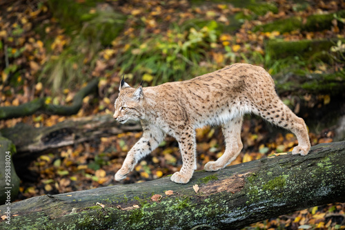 Lynx walking on the tree in the forest