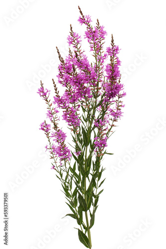 Lythrum salicaria flowers isolated on white background