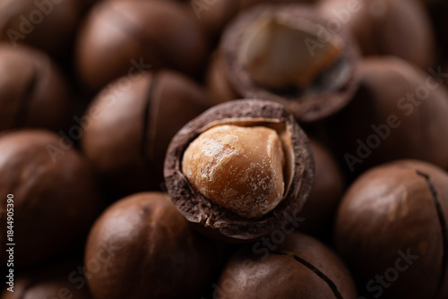 Macadamia nuts texture background, Close up