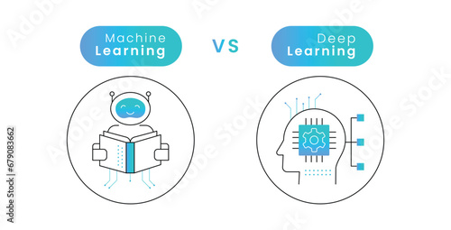 Machine Learning vs Deep Learning Vector Diagram with Editable Stroke and Colors. Machine Learning vs Deep Learning Infographic.