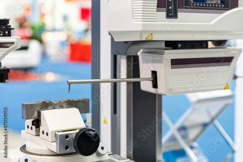 machining workpiece metal part or product set on vise during inspection on roughness and contour measuring machine