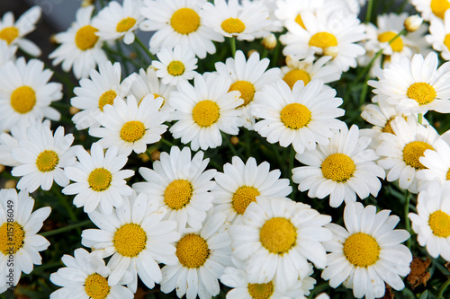 Macro of beautiful white daisies flowers.