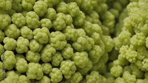 Macro of Romanesco Broccoli Surface Showcasing Natural Fractal Patterns and Textured Geometry in Soft Diffused Light