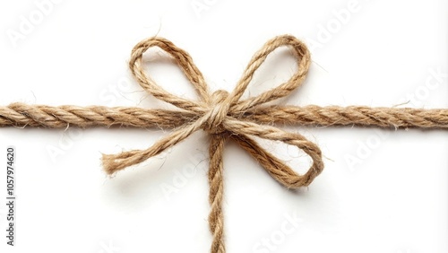 Macro packing rope made of jute with tied bow isolated on white background