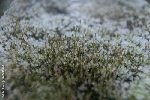 macro photo of frost on moss