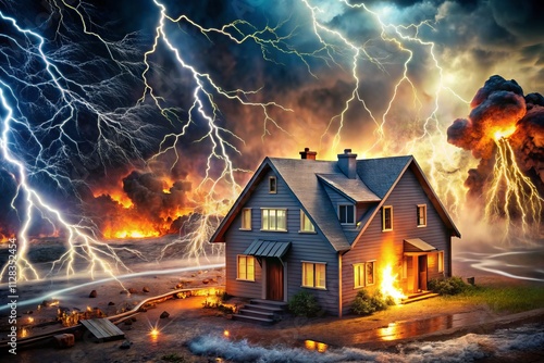 Macro Photography: Natural Disaster Line Art & House Accident Symbols