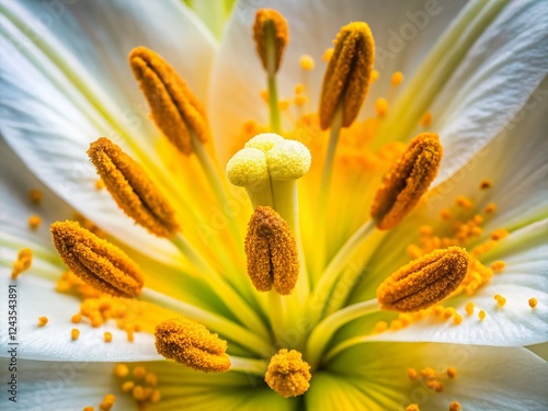 Macro Photography: White Lily Pollen Close-Up - Exquisite Floral Detail