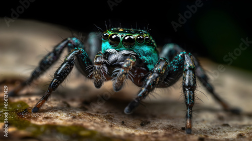 Macro shot of a blue spider with a blurred background, Close up, macro lens photography