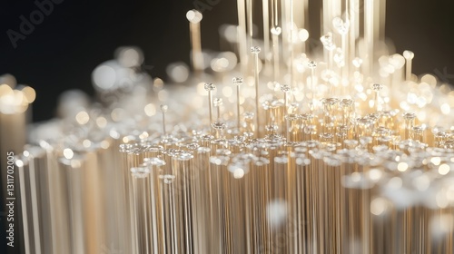 Macro shot of metal filaments being D printed, futuristic manufacturing and metallic textures.