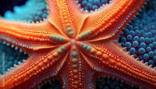 Macro starfish surface: bumpy, textured skin, unique design. Intricate marine detail.
