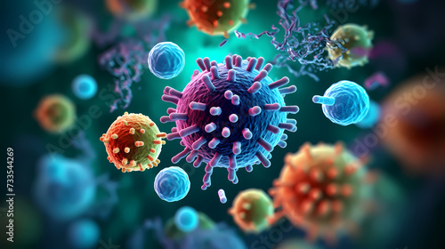 Macroscopic observation of organisms bacteria and cells and viruses under laboratory microscope