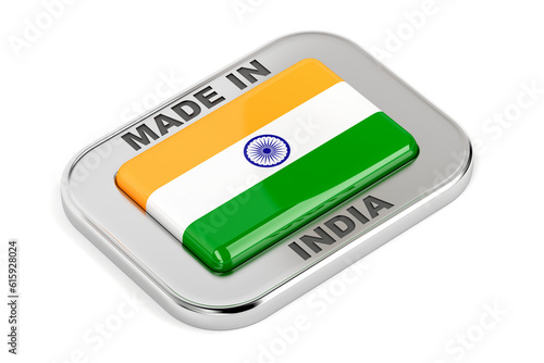 Made in India, shiny badge on white background