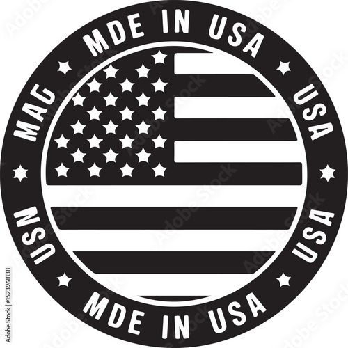 Made in USA Stamp Vector Design USA Flag Badge Silhouette Art American Quality Label Vector Scene Patriotic Made in America Emblem USA Product Mark with Stars & Stripes