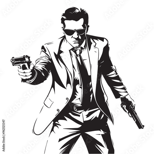 Mafia Gun Silhouette Vector Illustration isolated on white background.