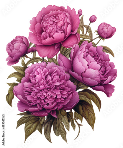 Magenta Peony Floral Clipart Collection, Bold Floral Sublimation Magenta Peony Cliparts, Created using generative AI