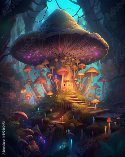 Magic mushrooms colorfull ilustration generated ai