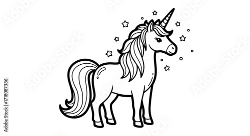Magical Unicorn Standing Gracefully with a Sparkle Mane on an Isolated White Background
