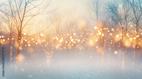 Magical Winter Forest with Glowing Lights and Snowfall