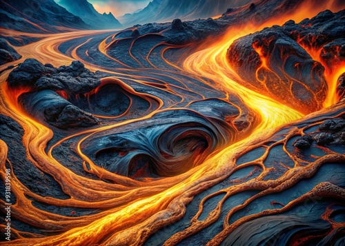 Magma Flow: Molten rock, fluid dynamics, geological forces, abstract patterns, molten textures