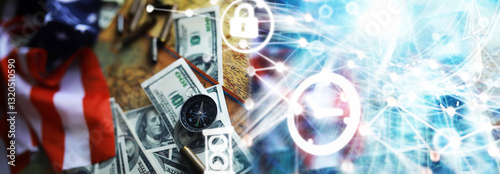Magnetic compass. The concept of finding successful solutions problems. Compass, map, sleeves, hands.