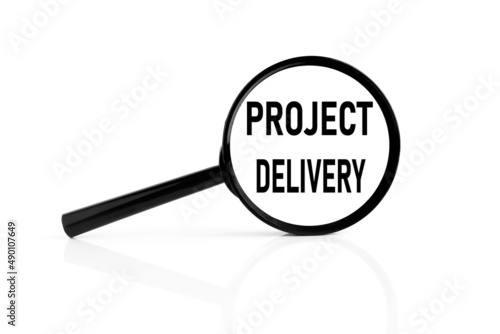 magnifier on a white background. text on glass. PROJECT DELIVERY