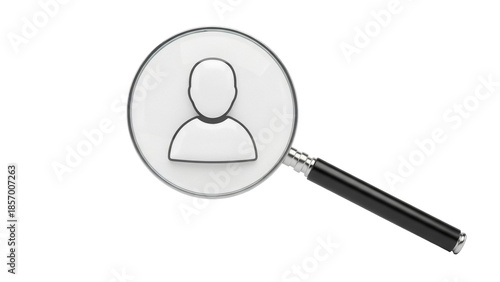 Magnifying glass with person icon isolated PNG, search for employee or user profile on transparent background