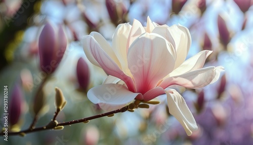 Magnolia blossoms on branch with copy space for design and print