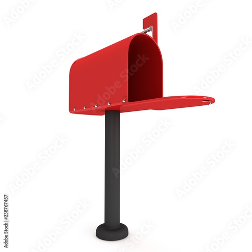 Mailbox with open door and raised flag. 3d render illustration isolated on white background.